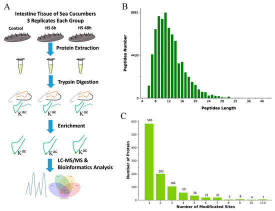 - Sun, L.; Lin, C.; Li, X.; Xing, L.; Huo, D.; Sun, J.; Zhang, L.; Yang, H. Comparative phospho-and acetyl proteomics analysis of posttranslational modifications regulating intestine regeneration in sea cucumbers. Front. Physiol. 2018, 9, 836. [Google Scholar] [CrossRef]