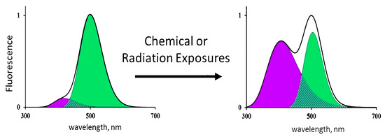 - Petrova, A.S.; Lukonina, A.A.; Badun, G.A.; Kudryasheva, N.S. Fluorescent Coelenteramide-Containing Protein as a Color Bioindicator for Low-Dose Radiation Effects. Anal. Bioanal. Chem. 2017, 409, 4377–4381. [Google Scholar] [CrossRef] [PubMed]