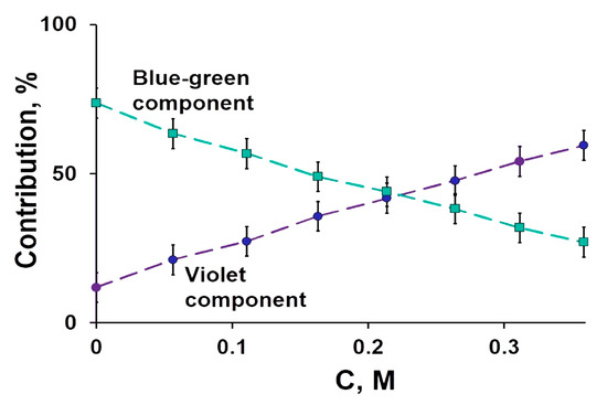 - Petrova, A.S.; Alieva, R.R.; Belogurova, N.V.; Tirranen, L.S.; Kudryasheva, N.S. Variation of spectral characteristics of coelenteramide-containing fluorescent protein from Obelia longissima exposed to Dimethyl sulfoxide. Russ. Phys. J. 2016, 59, 87–92. [Google Scholar] [CrossRef][Green Version]
