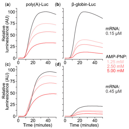 2.1. A Nonhydrolysable ATP Analogue Can Inhibit Translation of Capped Poly(A) 5′UTR mRNA