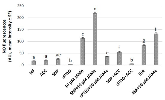 - Saito, N.; Nakamura, Y.; Mori, I.C.; Murata, Y. Nitric oxide functions in both methyl jasmonate signalling and abscisic acid signalling in Arabidopsis guard cells. Plant Signal. Behav. 2009, 4, 119–120. [Google Scholar] [CrossRef]