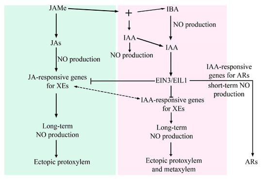 3.2. Nitric Oxide is a Common Marker of JAMe-induced Xylogenesis and Auxin-Induced Adventitious Rooting Acting Downstream to Pericycle Cell Determination to either Program
