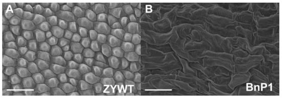 SEM was used to study the surface of petals of the wild-type and transgenic rapeseed plants. Fresh petals from 4–7 mm buds were collected and fixed in 2% glutaraldehyde overnight. The ensuing procedures were performed as previously reported [].