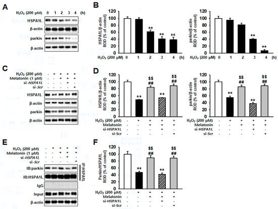 2.2. Melatonin-Treated hMSCs Show Increased HSPA1L Expression and Parkin Stability under Conditions of Oxidative Stress