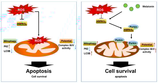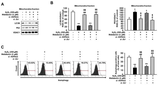 APA StyleYoon, Y. M., Kim, H. J., Lee, J. H., & Lee, S. H. (2019). Melatonin Enhances Mitophagy by Upregulating Expression of Heat Shock 70 kDa Protein 1L in Human Mesenchymal Stem Cells under Oxidative Stress. International Journal of Molecular Sciences, 20(18), 4545. https://doi.org/10.3390/ijms20184545