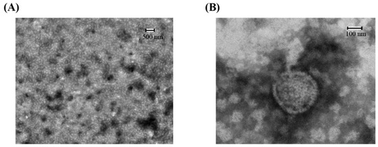 Transmission electron microscopy (TEM) micrograph of nanoparticles at 500 nm (A) and 100 nm (B). The samples were immobilized on copper grids and dried at room temperature. Then they were stained with phosphate tungsten acid and examined by TEM.
