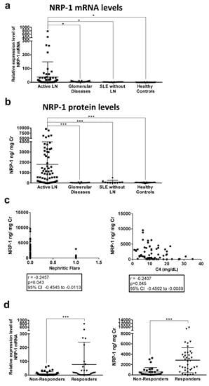 2.2. Urinary Expression of NRP-1 in Lupus Nephritis