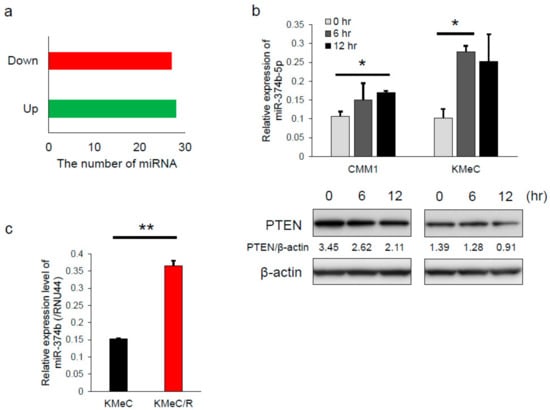 2.6. PTEN was Downregulated and miR-374b Upregulated in Recurrent Melanoma