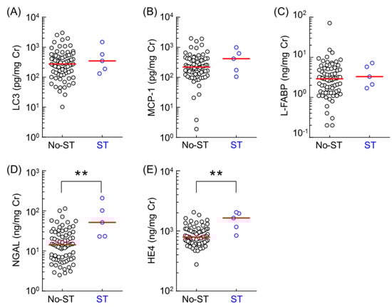 - Kohei, J.; Ishida, H.; Tanabe, K.; Tsuchiya, K.; Nitta, K. Neutrophil gelatinase-associated lipocalin is a sensitive biomarker for the early diagnosis of acute rejection after living-donor kidney transplantation. Int. Urol. Nephrol. 2013, 45, 1159–1167. [Google Scholar] [CrossRef] [PubMed]