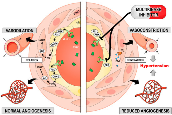 Bæk Møller N, Budolfsen C, Grimm D, Krüger M, Infanger M, Wehland M, E. Magnusson N. Drug-Induced Hypertension Caused by Multikinase Inhibitors (Sorafenib, Sunitinib, Lenvatinib and Axitinib) in Renal Cell Carcinoma Treatment. International Journal of Molecular Sciences. 2019; 20(19):4712. https://doi.org/10.3390/ijms20194712