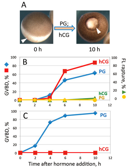 - Subtelny, S.; Smith, L.D.; Ecker, R.E. Maturation of ovarian frog eggs without ovulation. J. Exp. Zool. 1968, 168, 39–47. [Google Scholar] [CrossRef] [PubMed]