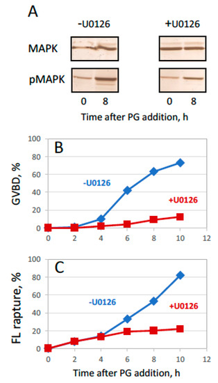 2.6. Inhibition of the MAPK Pathway Suppresses Both Steroid-Induced Maturation and Follicular Rupture