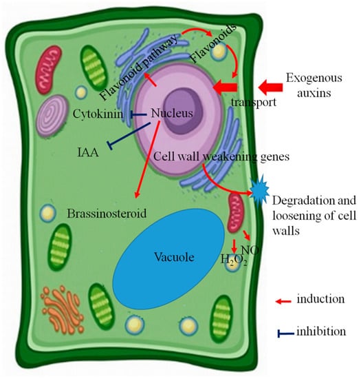 - Depudt, S.; Praet, S.V.; Nelissen, H.; Vanholme, B.; Vereecke, D. How plant hormone and their interactions affect cell growth. In Molecular Cell Biology of the Growth and Differentiation of Plant Cells; Rose, R.J., Ed.; CRC Press: Boca Rato, FL, USA, 2016; pp. 176–198. [Google Scholar]
