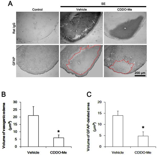 Kim, M.-J.; Park, H.; Choi, S.-H.; Kong, M.-J.; Kim, J.-E.; Kang, T.-C. CDDO-Me Attenuates Vasogenic Edema and Astroglial Death by Regulating NF-κB p65 Phosphorylations and Nrf2 Expression Following Status Epilepticus. Int. J. Mol. Sci. 2019, 20, 4862. https://doi.org/10.3390/ijms20194862