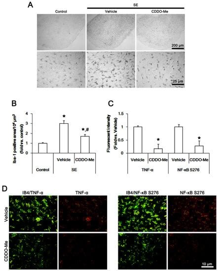 2.2. CDDO-Me Inhibits Microglial Activation and TNF-α Synthesis by Abrogating NF-κB S276 Phosphorylation Following SE