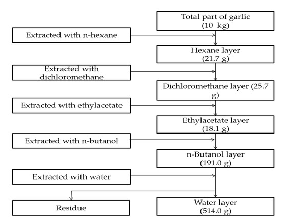 Fraction extraction procedure. The garlic was extracted using n-hexane, followed by dichloromethane, ethylacetate, n-butanol, and water.