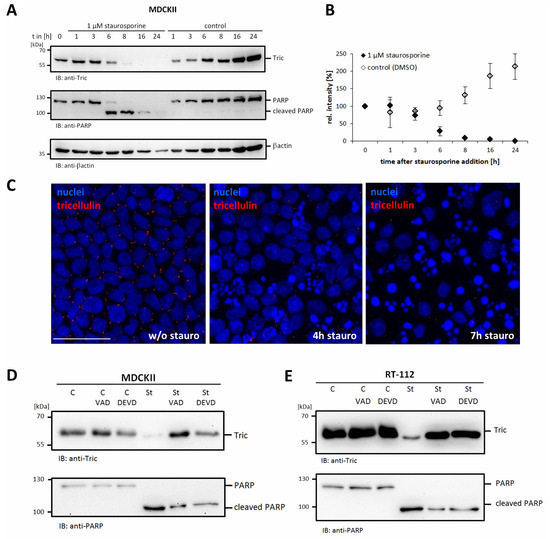 2.1. Caspase-Dependent Cleavage of Tricellulin upon Apoptotic Stimuli