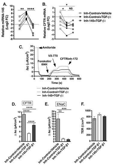 2.4. Upregulation of the Total Cellular miR-145 Levels by TGF-β1 Does Not Correlate with Repression of CFTR mRNA