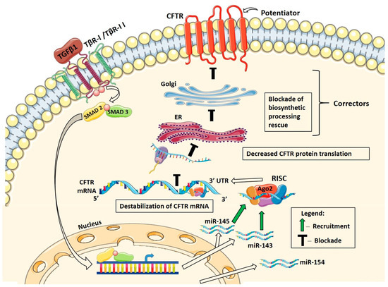- Snodgrass, S.M.; Cihil, K.M.; Cornuet, P.K.; Myerburg, M.M.; Swiatecka-Urban, A. Tgf-β1 Inhibits Cftr Biogenesis and Prevents Functional Rescue of DeltaF508-Cftr in Primary Differentiated Human Bronchial Epithelial Cells. PLoS ONE 2013, 8, e63167. [Google Scholar] [CrossRef] [PubMed]