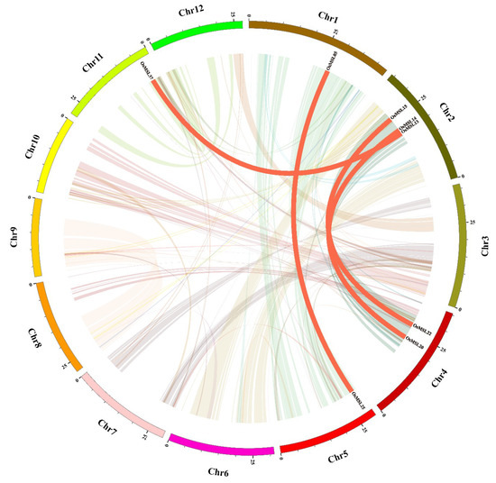 Synteny blocks of the rice genome were downloaded from the Plant Genome Duplication Database (PGDD, http://chibba.agtec.uga.edu/duplication/) [47]. Duplicated OsMSLs pairs were connected by solid lines.