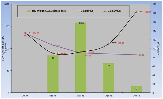 Sometimes CMV plays a crucial role in the immune response and inflammatory stimulation: it prompts lymphoproliferative disease [7] or a cross-reactive immune response and graft-versus-host reaction [8]. The impact of CMV serologic status can play a significant role in the outcome of hematopoietic stem cell transplantation (HSCT) [9]. Unfortunately, such CMV-IgG serostatus is interpreted as a qualitative parameter only [6,9] and in the context of its influence on final outcome [5,6]. Non-relapse mortality (NRM), and overall or disease-free survival (OS and DFS, respectively) are indirect exponents of CMV infectious process and pathogenicity.