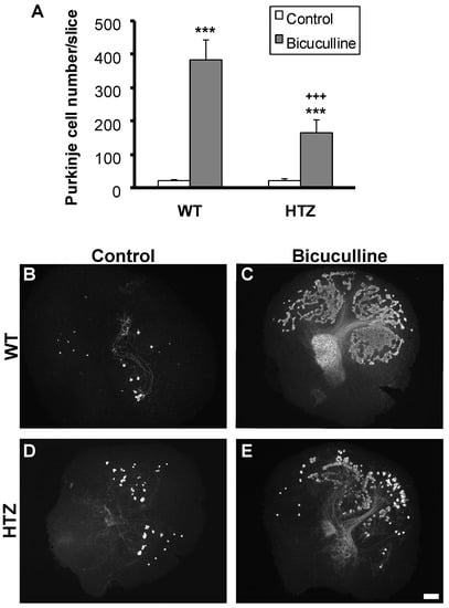 2.2. BDNF Haploinsufficiency Impairs Neuroprotection by Bicuculline in Cerebellar Slice Culture