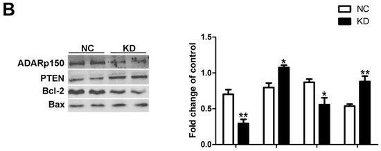2.8. ADAR1p150 Plays an Important Role in Maintaining Cell Viability by Regulating PTEN Expression