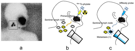 Lymph node staging is a significant prognostic factor in many malignancies, especially solid malignant tumors. The accurate detection of lymph node metastases is essential for treatment success in early-stage malignant cancer. Sentinel lymph node (SLN) biopsy is the most effective procedure for detecting small or micrometastases that are undetectable by conventional imaging modalities, such as computed tomography (CT), magnetic resonance imaging (MRI), or positron emission tomography (PET). SLNs are the first nodes in the regional lymph basin to direct drain lymph from primary lesions. Histopathological examination of one or a few SLNs can reveal the stage of the regional lymph drainage field. SLN biopsy has been a standard procedure in breast cancer and melanoma and has since been introduced in head and neck cancer and other malignancies [1,2,3,4]. SLN biopsy is a minimally invasive procedure. Patients with a negative SLN biopsy are spared unnecessary extensive surgery, thereby reducing the risk of postsurgical complications, such as lymphedema and numbness, while those with a positive SLN biopsy undergo the lymph node dissection surgery at an early stage.