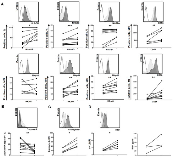 - Erokhina, S.A.; Streltsova, M.A.; Kanevskiy, L.M.; Telford, W.G.; Sapozhnikov, A.M.; Kovalenko, E.I. HLA-DR+ NK cells are mostly characterized by less mature phenotype and high functional activity. Immunol. Cell Biol. 2018, 96, 212–228. [Google Scholar] [CrossRef] [PubMed]