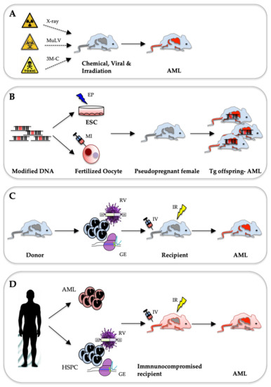 2. AML Mouse Models Induced by Chemicals, Viral Infection or Irradiation
