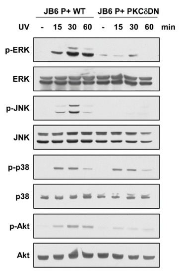 2.4. Expression of Dominant Negative PKCδ Suppresses UV-Induced MAPK and Akt Activation