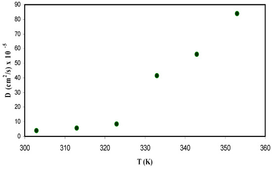 Figure 11 shows a plot between diffusion coefficient and temperature. From the plot it is observed that the diffusion coefficient increases non-linearly with the temperature.