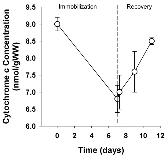 - Larsen, S.; Nielsen, J.; Hansen, C.N.; Nielsen, L.B.; Wibrand, F.; Stride, N.; Schroder, H.D.; Boushel, R.; Helge, J.W.; Dela, F.; et al. Biomarkers of mitochondrial content in skeletal muscle of healthy young human subjects. J. Physiol. 2012, 590, 3349–3360. [Google Scholar] [CrossRef] [PubMed]