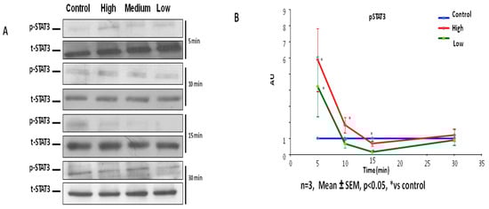 - Trenerry, M.K.; Carey, K.A.; Ward, A.C.; Cameron-Smith, D. STAT3 signaling is activated in human skeletal muscle following acute resistance exercise. J. Appl. Physiol. 2007, 102, 1483–1489. [Google Scholar] [CrossRef]