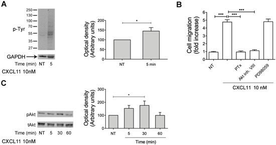 2.7. CXCL11, as PDT, Triggers Monocyte Migration through Akt Kinase Activation