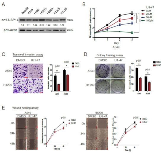 2.2. Inhibition of USP14 Decreases Tumor Proliferation and Invasion with IU1-47