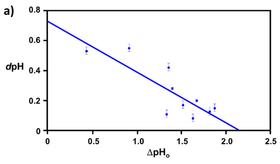 4.3.2. Correlation Relation between ΔpHo and dpH and Extraction of Coverage Ratio