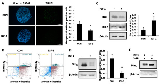 2.1. IGF-1 Prevented Apoptosis and Down-regulated BimEL Protein Level in Porcine Granulosa Cells