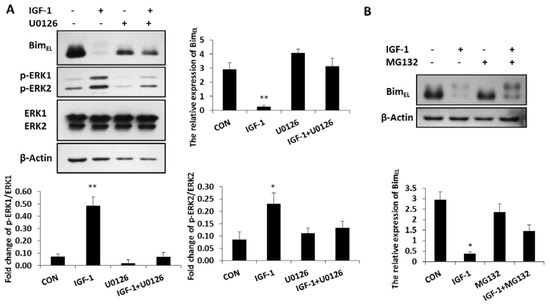 2.2. IGF-1-Induced Degradation of BimEL Regulated by ERK1/2 Pathway Was Associated with Proteasome Way