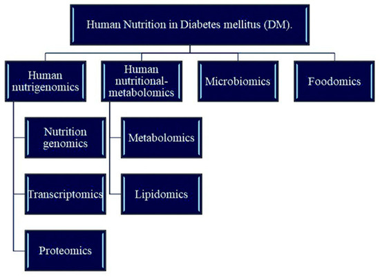 Human nutriomics is a new discipline formed from the combination of nutritional food science and omics in the post-genomic era, and mainly involves studies of dietary intervention methods and nutritional health measures at both the molecular and population levels to achieve personalized nutrition [7]. Human nutriomics typically include protein-based human nutrigenomics, metabolic component-based human nutritional-metabolomics, microbial-based human nutritional systems biology, system-based food-omics, and systems biology. This review analyzed nutriomics over the years, described the research progress and molecular mechanisms, and provides a reference for subsequent DM research.