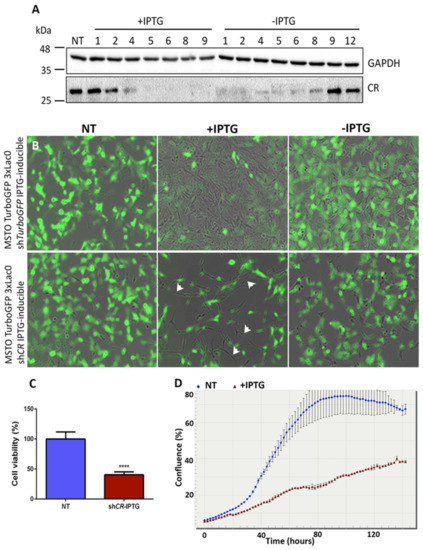 2.2. Inducible CR Downregulation Leads to a Decrease in the Proliferation and Survival of MSTO-211H Cells