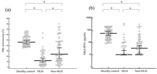 Chicago/Turabian StyleLee, Hyeyoung, Hoon Seok Kim, Jong-Mi Lee, Ki Hyun Park, Ae-Ran Choi, Jae-Ho Yoon, Hyejin Ryu, and Eun-Jee Oh. 2019. "Natural Killer Cell Function Tests by Flowcytometry-Based Cytotoxicity and IFN-γ Production for the Diagnosis of Adult Hemophagocytic Lymphohistiocytosis" International Journal of Molecular Sciences 20, no. 21: 5413. https://doi.org/10.3390/ijms20215413