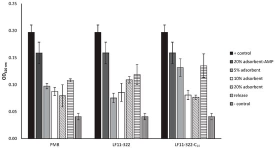 In recent years, multidrug resistance (MDR) of bacteria has become a global health problem, and there is an increasing demand for new antimicrobial agents and antibiotics. One of the most promising approaches in antibiotic development involves antimicrobial peptides (AMPs). AMPs are cationic amphipathic peptides representing an ancient host defense mechanism and are ubiquitous in living organisms. Many of them have a high affinity to components of the cell membrane of Gram-negative and/or Gram-positive bacteria. Therefore, compared to many conventional antibiotics which impair the bacterial metabolism, AMPs are less prone to the development of bacterial resistance since they interact directly with the bacterial membrane, which is an evolutionary highly conserved structure, and is not able to perform major structural changes without losing its various vital functions. The interaction of AMPs with the bacterial membrane initiates a change in the membrane curvature and leads to a destabilization and permeabilization of the membrane, finally resulting in the loss of the barrier function [,]. In order to improve the antimicrobial activity of some AMPs, their hydrophobic properties were increased by targeted N-acylation. This led to increased antimicrobial activity against Escherichia coli, which correlates with the degree of permeability of bacterial membranes of these peptides [,]. Some AMPs have a specifically high affinity to lipopolysaccharides (LPS, endotoxins) from Gram-negative bacteria and are able to suppress an LPS-induced release of tumor necrosis factor alpha (TNF-α) and could protect mice from lethal endotoxemia [,]. Among these is Polymyxin B (PMB), a naturally occurring AMP produced by Bacillus polymyxa. Due to its high affinity to LPS, it is used for a hemoperfusion adsorbent called Toraymyxin, which consists of a polystyrene-based woven fiber with covalently immobilized PMB. The manufacturer claims that Toraymyxin is able to remove LPS from patients suffering from endotoxemia using extracorporeal perfusion of the adsorbent cartridge. However, it has been shown recently that Toraymyxin acts as a delivery system of PMB by releasing the non-covalently bound fraction into the patients’ blood stream, and LPS is neutralized by PMB, which results in a prevention of the activation of pattern recognition receptors. Also, other adsorbents intended for the removal of LPS do not adsorb LPS sufficiently in in vitro experiments []. Consequently, there is currently no membrane/adsorption based blood purification system available that is able to remove LPS from the patients’ blood.