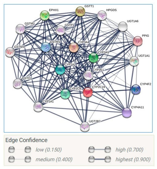 Next, we used STRING software to build a gene network of the CYP2C19 gene and other neighbor genes using https://string-db.org/ as shown in Figure 4.