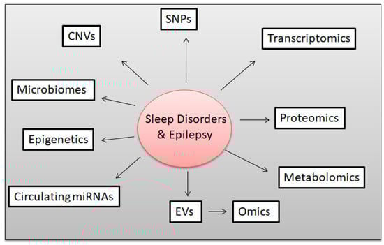 Sleep disorders are associated with many diseases including epilepsy. The brain comprises a vast dynamic network of tens of billions of cells, which respond to fluctuating changes in the environment. Progress in the understanding of human genetic variability and technological progress has empowered robust assessment of hundreds of thousands of polymorphisms, covering the majority of common genetic variations. As a result, enormous breakthroughs in understanding the genetic architecture of many complex phenotypes have surfaced. Despite the expectations of pharmacogenetics research in epilepsy, few studies have provided conclusive results, and even fewer have been translated into clinical practice. Genomic variation of CYP2C19 was considered in drug pharmacokinetic proteins, in drug target proteins and finally across multiple candidate genes, thus providing three broad hypotheses as sources, housing potential influential genomic variations. Metabolic drug interactions may have important clinical consequences. In the case of phenobarbital, these interactions are particularly common, due to the fact that many of these agents are potent inducers (or in some case, inhibitors) of the drug metabolizing enzymes and they are usually administered chronically, often in combination therapy. Ion channels are frequently mutated in epilepsy disorders and, are therefore, frequent targets of pharmacological manipulations to reduce or prevent pathologic hypersynchronous activity in the epileptic brain. Presently, gene panel testing is the favored choice for epilepsy genetic diagnosis due to the lower cost and higher coverage of the technology. However, as the price for and WGS and next generation sequencing (NGS) continues to decrease, they will soon be fully integrated into the diagnostic setting, providing a wider range of diagnostic options for clinicians to utilize. The use of NGS technologies is the future of genetic diagnosis. As further research is completed on epilepsy along with the identification of the causal variants associated with the disease, NGS will become the most viable diagnostic option. The future study of epilepsy should focus on integrating whole-genome sequencing variants and environmental factors into epigenetic change to understand the potential mechanism of epilepsy (Figure 7), which will allow clinics to apply the most effective therapy based on its individual genetics. We believe the application of precision medicine as a gold standard is the key for treatment and diagnostics for epilepsy in the near future. Pharmacologic treatment of the most common pediatric sleep disorders lacks evidence, and alternative methods, which have been proved to alleviate symptoms are preferred in most cases. It is now apparent that EVs participate in a range of physiological processes and represent an important intercellular communication mechanism. Additionally, the specificity of EVs and their functional cargos (proteins, different classes of non-coding RNA, DNA and lipids) will provide a new source of accessible biomarkers in both children and adults. Further studies are necessary to clarify the effectiveness of these precision medicine approaches in genetic epilepsies including EVs.