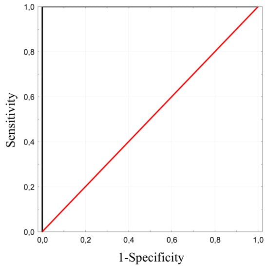 Of the 133 analyzed samples, chromosomal aberrations were found in 31 cases (19/106 amniotic fluid samples, 12/27 CVS). The most frequently occurring aberration was trisomy 21, identified in 17 cases. Digital PCR analysis also identified in nine cases of trisomy 18, three cases of trisomy 13 and one case of monosomy X and XXXY. Results from dPCR analysis were obtained from each sample, regardless of the quality and concentration of fetal DNA. All samples were analyzed simultaneously with two procedures: digital PCR analysis and cell culture for conventional karyotyping with GTG-banding. The results were congruent. There were no false positive or false negative results. The distribution of the chromosome ratio for euploid and aneuploid samples showed a statistically significant result (p = 0.003 for T13, p = 0.001 for T18 and T21, Mann-Whitney U test; Figure 3). For each trisomy screening test a receiver operating characteristic (ROC) curve of the chromosome ratio was plotted. The area under the ROC curve (AUROC: 1 (IC 95%: 1.0; 1.0)) and the shape of the curve was characteristic for an optimal screening test. The obtained specificity with optimal threshold allowed for an easy and unambiguous discrimination between euploid and aneuploid samples with 100% confidence limit (Figure 4). For each trisomy the test allowed precise separation (sensitivity and specificity were equal to 100%, AUROC = 1 (95% IC: 1.0; 1.0).