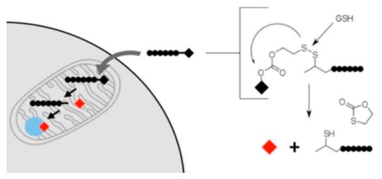- Lei, E.K.; Kelley, S.O. Delivery and Release of Small-Molecule Probes in Mitochondria Using Traceless Linkers. J. Am. Chem. Soc. 2017, 139, 9455–9458. [Google Scholar] [CrossRef]