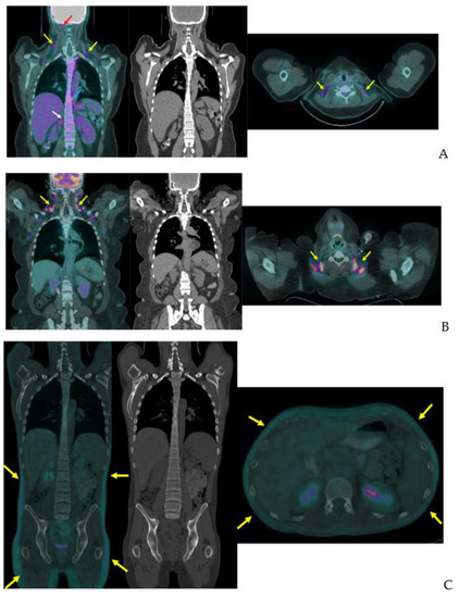 - Blake, M.A.; Singh, A.; Setty, B.N.; Slattery, J.; Kalra, M.; Maher, M.M.; Sahani, D.V.; Fischman, A.J.; Mueller, P.R. Pearls and Pitfalls in Interpretation of Abdominal and Pelvic PET-CT. Radiographics 2006, 26, 1335–1353. [Google Scholar] [CrossRef] [PubMed][Green Version]