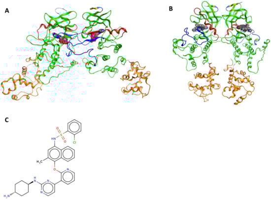 - Wang, Q.; Pechersky, Y.; Sagawa, S.; Pan, A.C.; Shaw, D.E. Structural mechanism for Bruton’s tyrosine kinase activation at the cell membrane. Proc. Natl. Acad. Sci. USA 2019, 116, 9390–9399. [Google Scholar] [CrossRef]