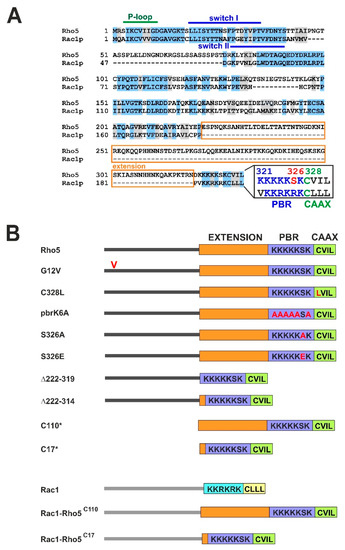 2.2. Rho5 Requires the Basic PBR Region for Proper Plasma Membrane Association and Physiological Function